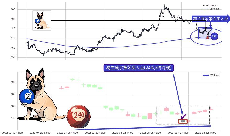 ⚀ 2022-08-10 13:00:00-小时显现 葛兰威尔均线 240小时均线 第②买入点 上升趋势的中继信号,后市看涨,买进信号
