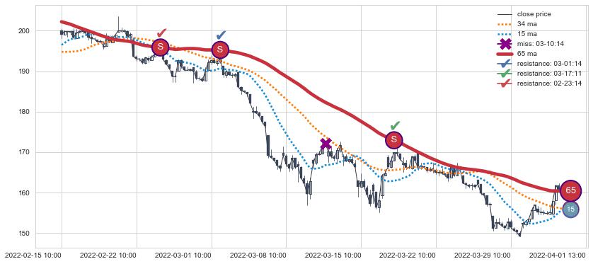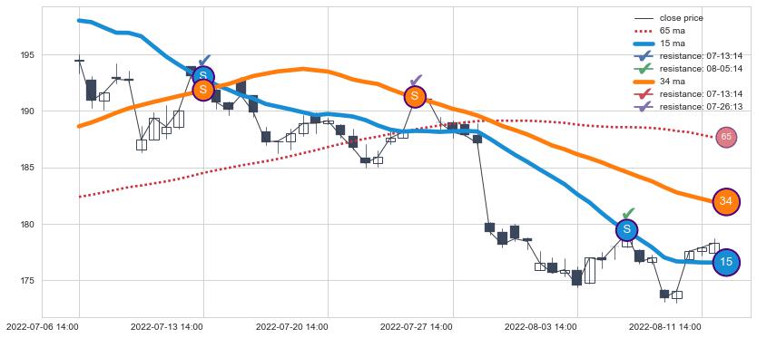⚂ 2022-07-28 13:00:00小时突然冒出一根大阴线,一下子下穿三条均线且收盘价收在各条均线之下
