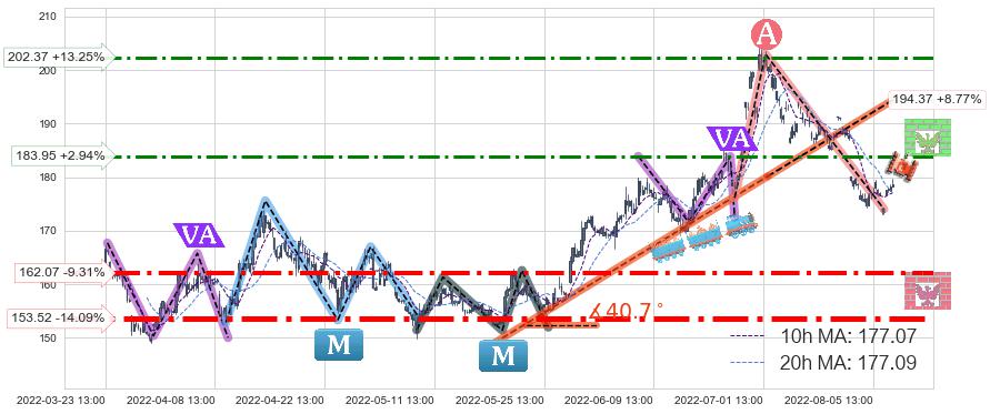 ♘ 阻力价格位183.95,可信任强度65.68%,距离最后交易2022-08-12 14:00形成的收盘价格178.70相差 +2.94%