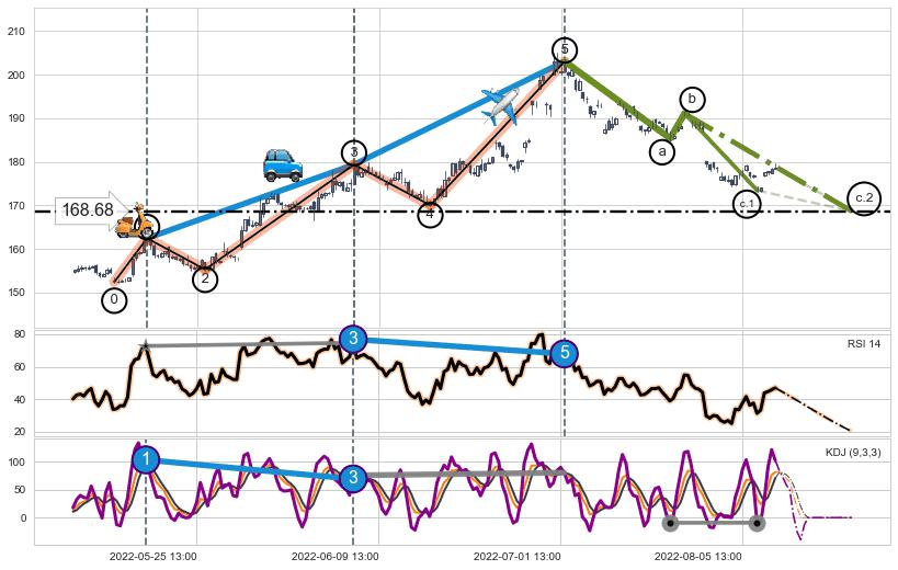 ➣ a,c调整浪MACD, RSI, KDJ走势都【未出现】背离,abc走势延续, 5浪反转概率增强