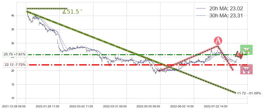 ♞ 20小时均线:23.02,30小时均线:23.31→ 快线<慢线