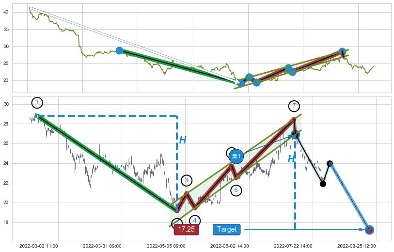 ➣ D点拟合预测价格39.04,距离最后交易收盘价格23.97相差 +62.88%