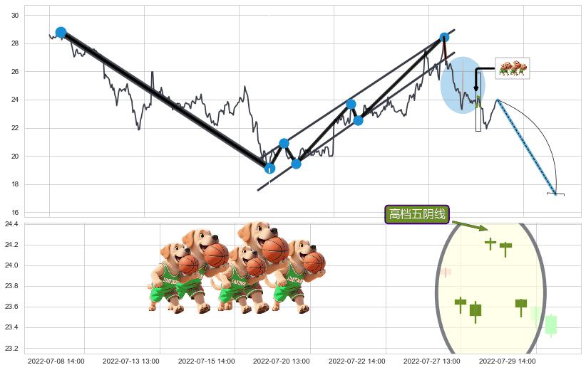 ➢ 收盘价(07-28:13: 24.21 )→回踩→第一根k线低点(07-26:14: 23.89 )