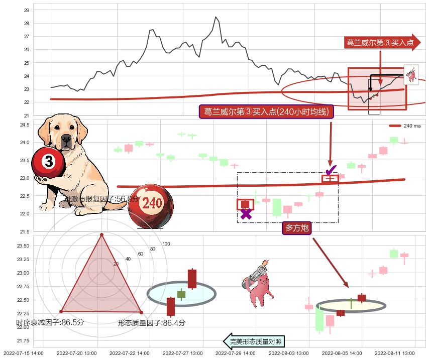 | 4 🅚:葛兰威尔第③买入点 ➕ 🌊:波浪理论下跌5浪延续反弹:猜想回调C点击穿突破,猜想持续蓄力反弹abc上涨方向(大周期趋势均值回复后小周期持续趋势跟踪) ☞ 看多信号 ⇥ 【均线】交织【图形】⇥ 综合量化分数: 56 | > |