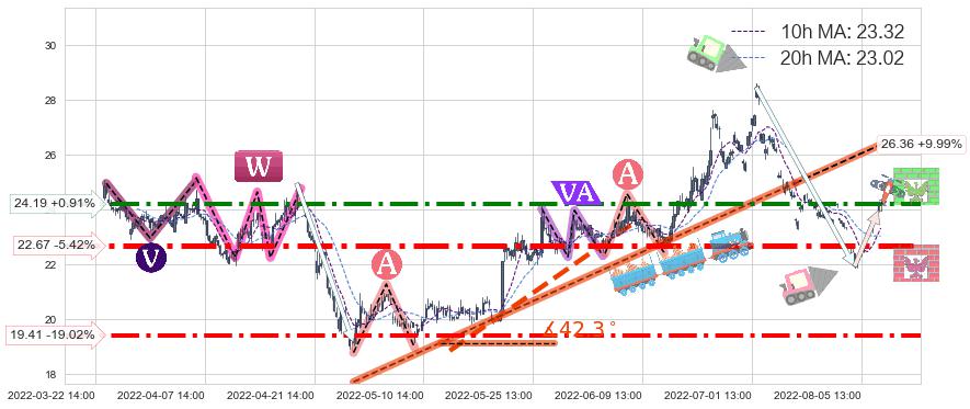 ♘ 支撑价格位22.67,可信任强度98.15%,距离最后交易2022-08-12 14:00形成的收盘价格23.97相差 -5.42%