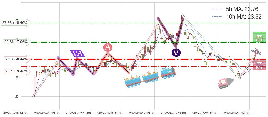 ♘ 阻力价格位27.66,可信任强度54.29%,距离最后交易2022-08-12 14:00形成的收盘价格23.97相差 +15.40%