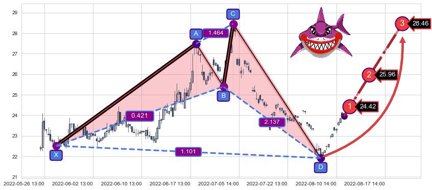 ➣ 已完成【鲨鱼】形态起点X: 05-27:14, 终点D: 08-03:14, 共137交易小时