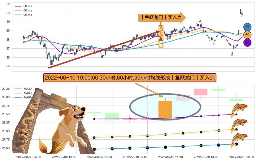 形态多维评估: ⚀ 2022-06-10 10:00:00小时显现 30小时-60小时-90小时均线 【鱼跃龙门】买入点 看多信号,后市看涨,买入
