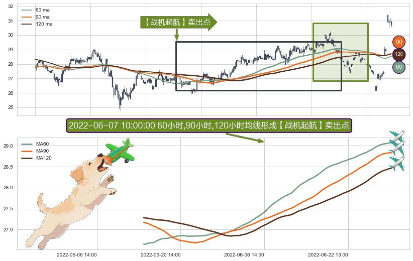 形态多维评估: ⚀ 2022-05-16 11:00:00小时-2022-07-11 13:00:00小时显现 60小时-90小时-120小时均线 【战机起航】卖出点 看空信号,后市看跌,卖出
