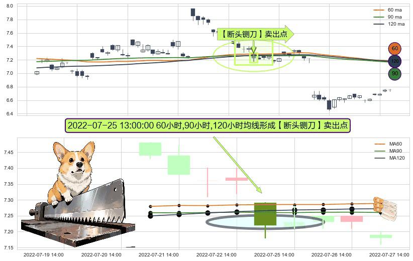 ⚀ 2022-07-25 13:00:00小时显现 60小时-90小时-120小时均线 【断头铡刀】卖出点 看空信号,后市看跌,卖出