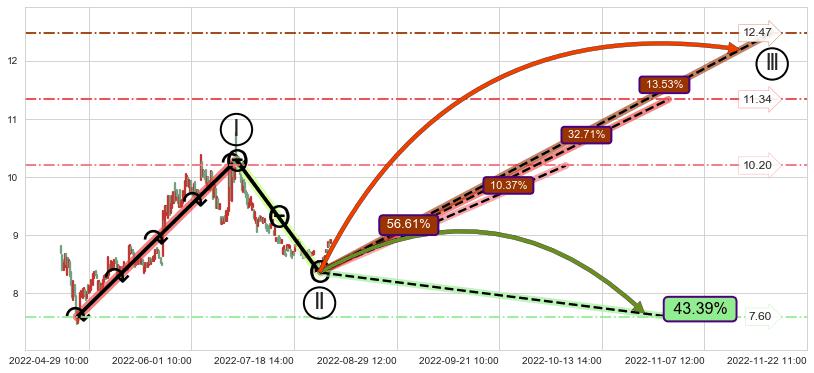 ♘ 支撑价格位7.60,可信任强度56.29%,距离最后交易2022-08-12 14:00形成的收盘价格8.88相差 -14.41%