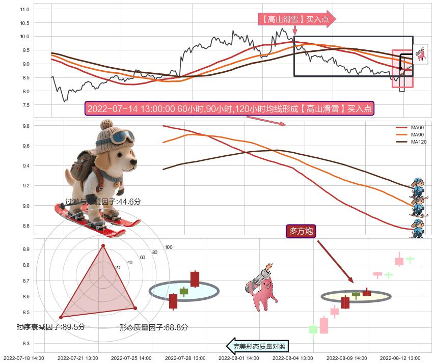 | 6 🅚:【高山滑雪】买入点 ➕ 📡:谐波蝴蝶猜想c点下沉接近b点后强支撑来临拉升上涨(均值回复) ☞ 看多信号 ⇥ 【均线】交织【图形】⇥ 综合量化分数: 53 | > |