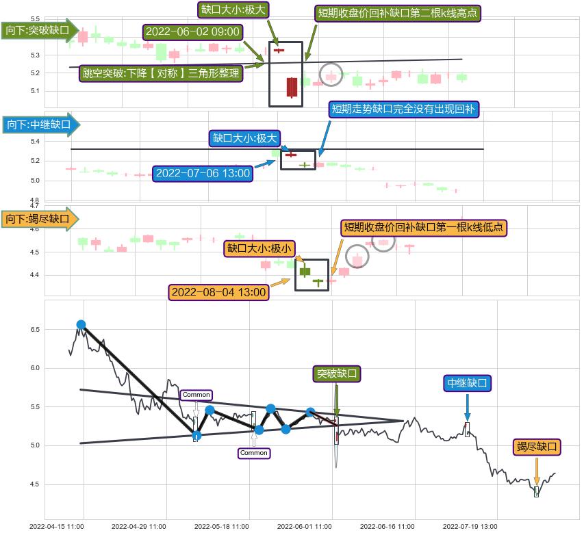 ➢ 2022-08-04 13:00形成:向下跳空【竭尽】缺口