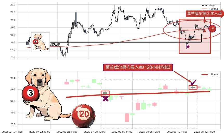 ⚀ 2022-08-11 13:00:00-小时显现 葛兰威尔均线 120小时均线 第③买入点 上升趋势的中继信号,后市看涨,买进信号