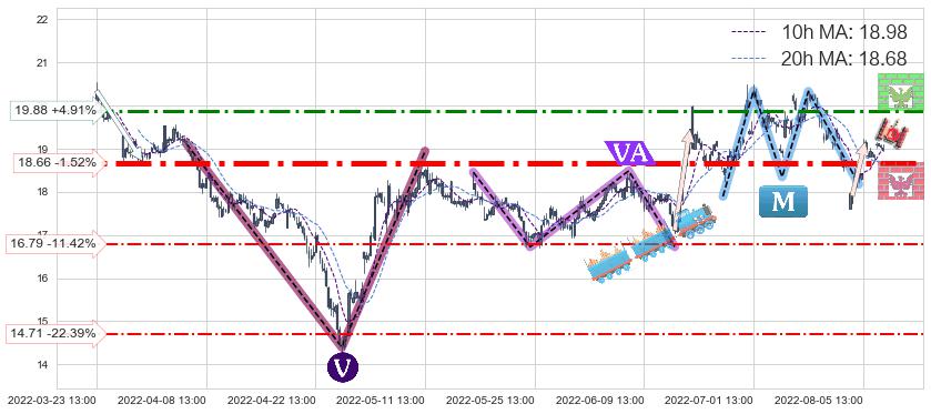 ➢ 【仅预测突破】最后价格:18.95与预测突破价格:17.66→【空间较大】后续最小【反转】第一目标价格→(08-23:12: 15.77 )