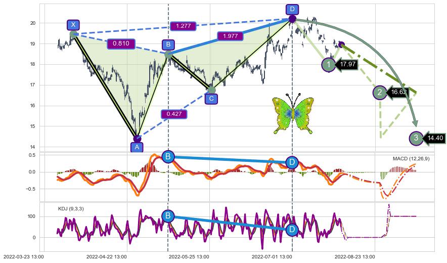 | 9 🅚:下跌孕十字星 ➕ 📡:谐波蝴蝶已到达d点:猜想c拉升到达d点后泄力性下沉下跌(均值回复) ☞ 看空信号 ⇥ 【🅚线】交织【图形】⇥ 综合量化分数: 45 | > |