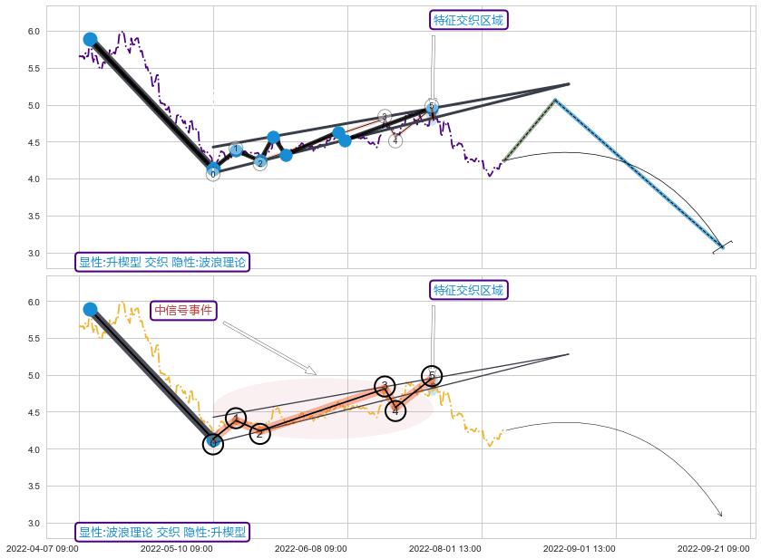 从2022-06-14 11:00至2022-07-05 14:00,共包含42个小时,阶段股价上涨11.68%,阶段股价变动位移路程比: 1 : 3