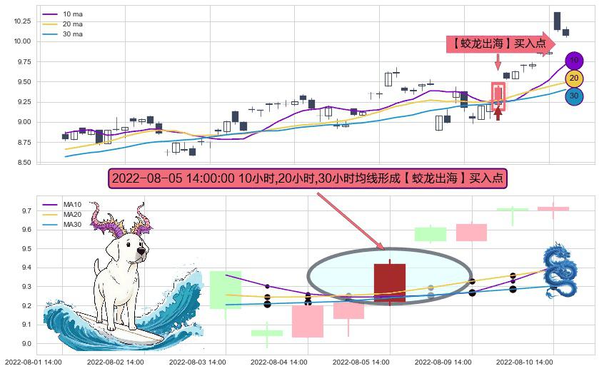 形态多维评估: ⚀ 2022-08-05 14:00:00小时显现 10小时-20小时-30小时均线 【蛟龙出海】买入点 看多信号,后市看涨,买入