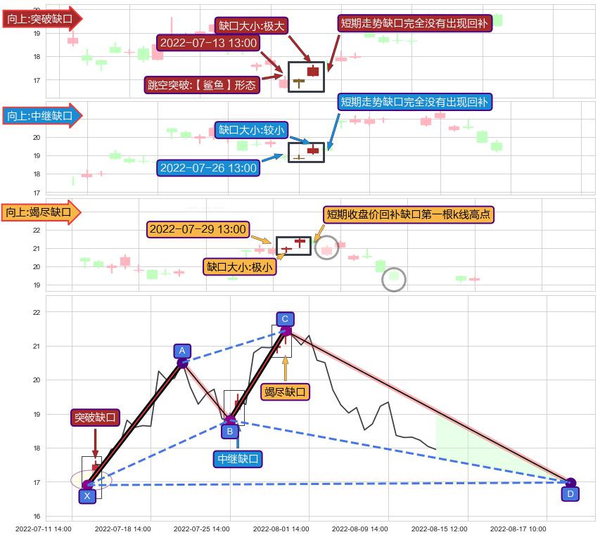 ➢ 2022-07-29 13:00形成:向上跳空【竭尽】缺口