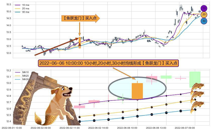 ⚀ 2022-06-06 10:00:00小时显现 10小时-20小时-30小时均线 【鱼跃龙门】买入点 看多信号,后市看涨,买入