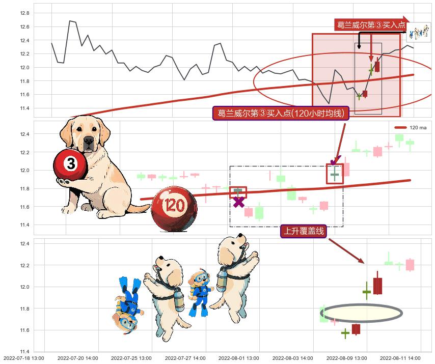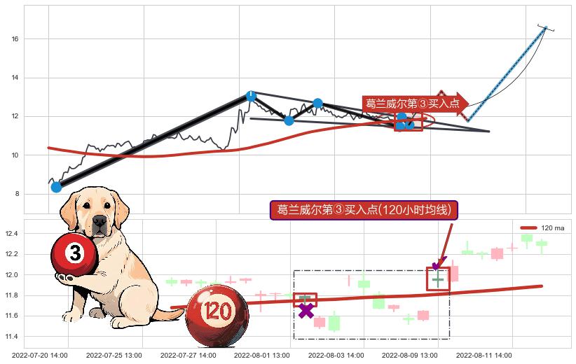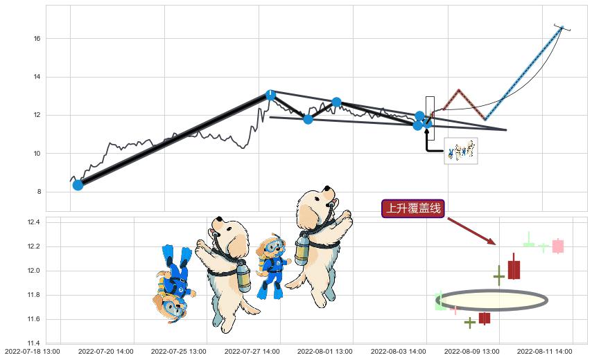 从2022-08-02 14:00至2022-08-12 14:00,共包含15个小时,阶段股价上涨7.08%,阶段股价变动位移路程比: 1 : 2