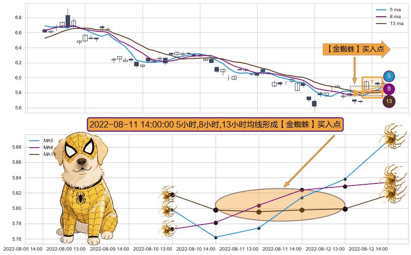 ⚀ 2022-08-11 14:00:00小时显现 5小时-8小时-13小时均线 【金蜘蛛】买入点 看多信号,后市看涨,买入