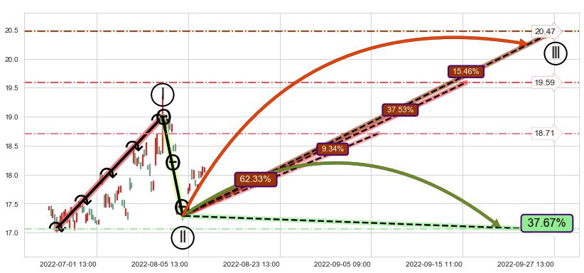 ➢ 循环浪继续向上【最低】位置(09-05:13, 18.71),匹配聚类样本比例14.99%, 可能性概率9.34%