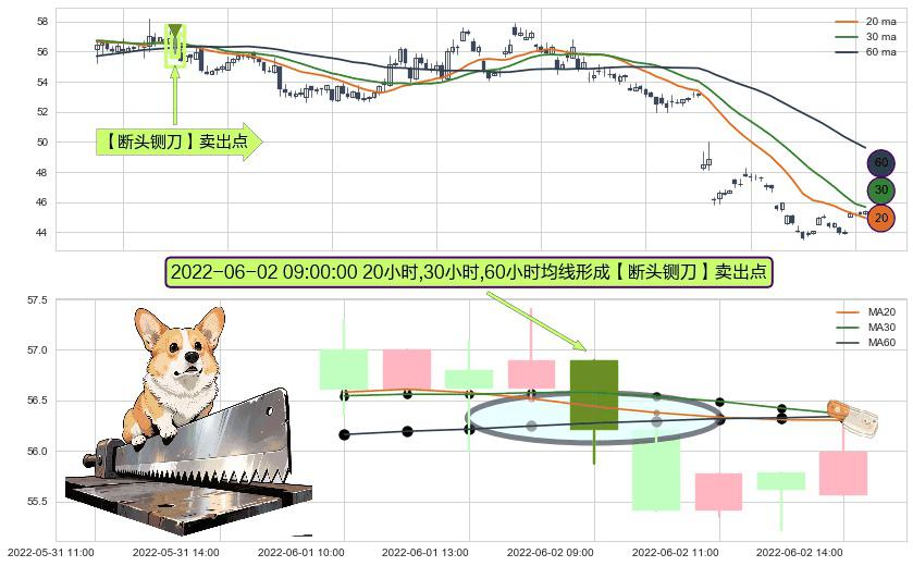 形态多维评估: ⚀ 2022-06-02 09:00:00小时显现 20小时-30小时-60小时均线 【断头铡刀】卖出点 看空信号,后市看跌,卖出