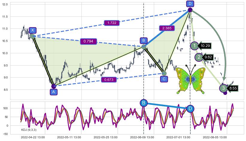 ➣ 已完成【蝴蝶】形态起点X: 04-19:10, 终点D: 07-01:13, 共218交易小时