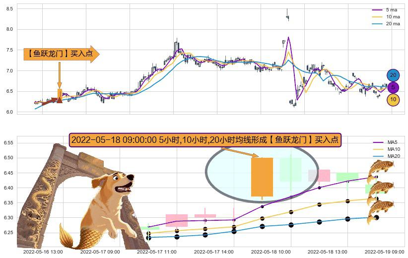形态多维评估: ⚀ 2022-05-18 09:00:00小时显现 5小时-10小时-20小时均线 【鱼跃龙门】买入点 看多信号,后市看涨,买入