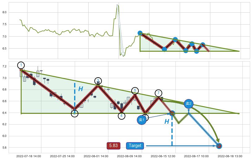 ➣ AI预测: 假定反转启动后, 第❶目标位置(08-23:11, 6.77)