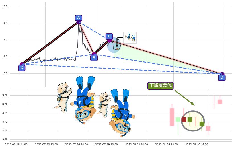 | 3 🅚:两黑夹一红 ➕ 📡:谐波蝴蝶猜想c点拉升接近b点后强阻力来临下沉下跌(均值回复) ☞ 看空信号 ⇥ 【🅚线】交织【图形】⇥ 综合量化分数: 49 | > |