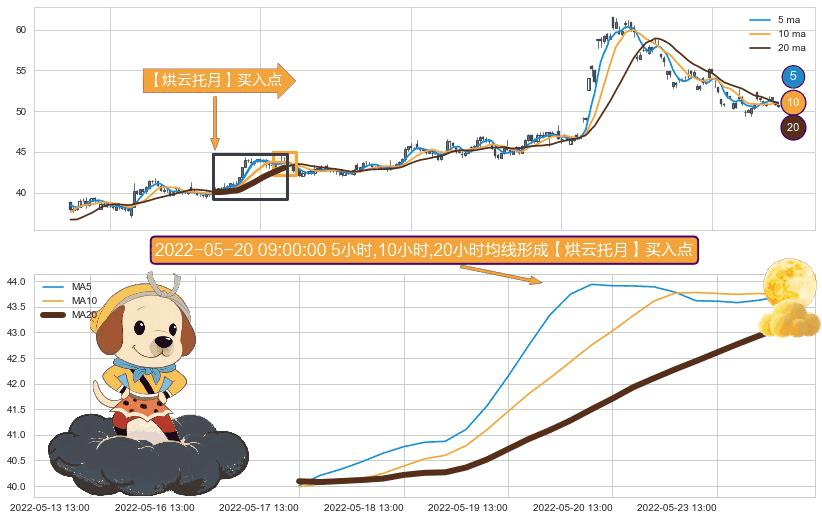 ⚀ 2022-05-17 13:00:00小时-2022-05-24 10:00:00小时显现 5小时-10小时-20小时均线 【烘云托月】买入点 看多信号,后市看涨,买入