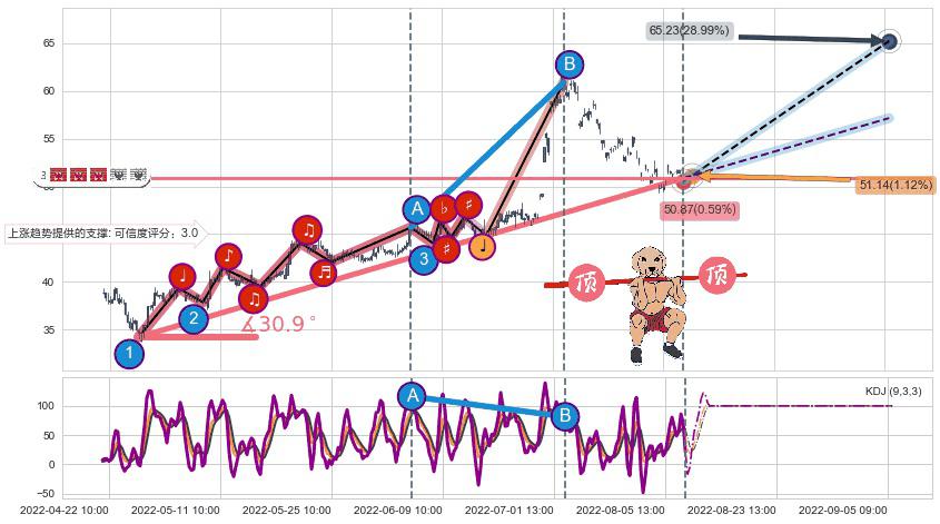 ➢ 预测:2022-08-15 12:00,【试探支撑】稳定目前上涨趋势的前提下,预测价格:51.14