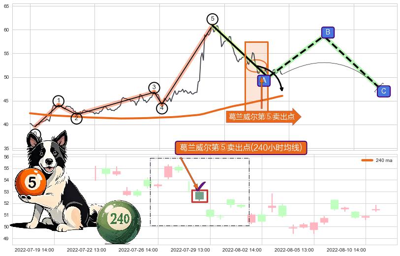 | 2 🅚:下跌两颗星 | 下跌三颗星 ➕ 🌊:波浪理论猜想上涨浪5已形成,猜想后续形成回调abc下跌(均值回复) ☞ 看空信号 ⇥ 【🅚线】交织【图形】⇥ 综合量化分数: 49 | > |