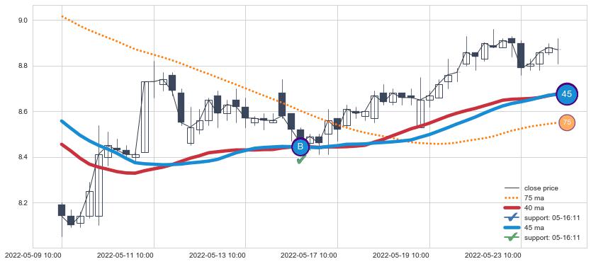 ⚂ 2022-07-12 13:00:00-小时均线向下破位,2022-08-04 13:00:00-小时重新上穿突破均线,均线支撑再次生效