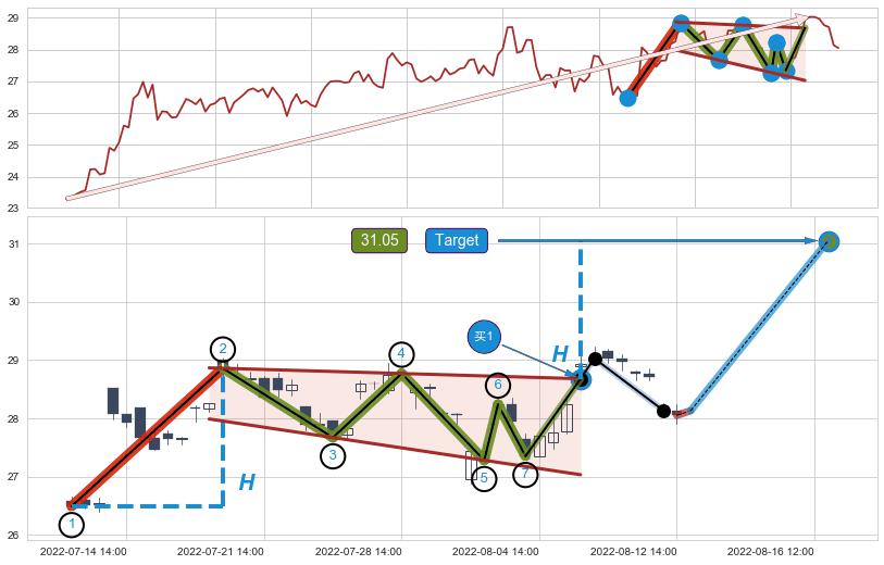 ➣ 最小中继整理涨幅→𝐇: 2.370 (𝐇旗杆的长度:旗杆起点→顶点)