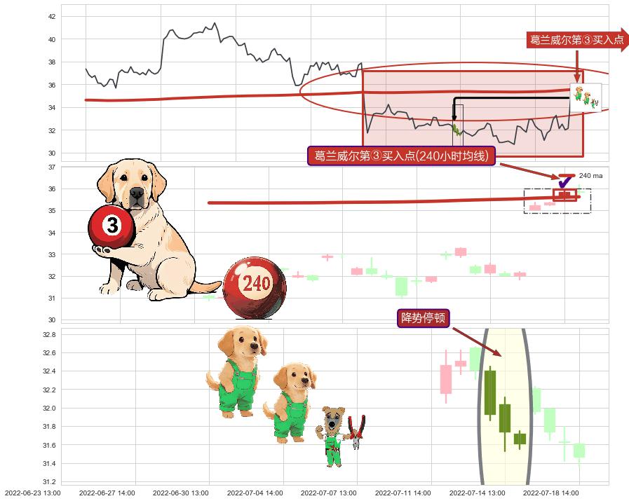 ➣ 2022-08-12 13:00:00-小时显现 葛兰威尔均线 240小时均线 第③买入点 上升趋势的中继信号,后市看涨,买进信号