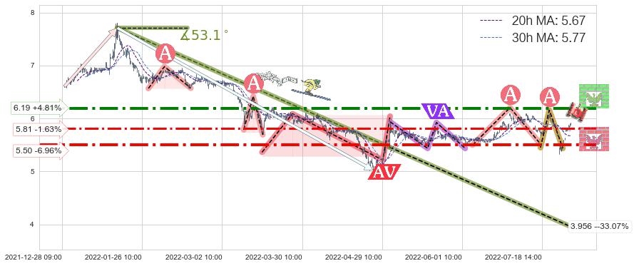 ♞ 20小时均线:5.67,30小时均线:5.77→ 快线<慢线