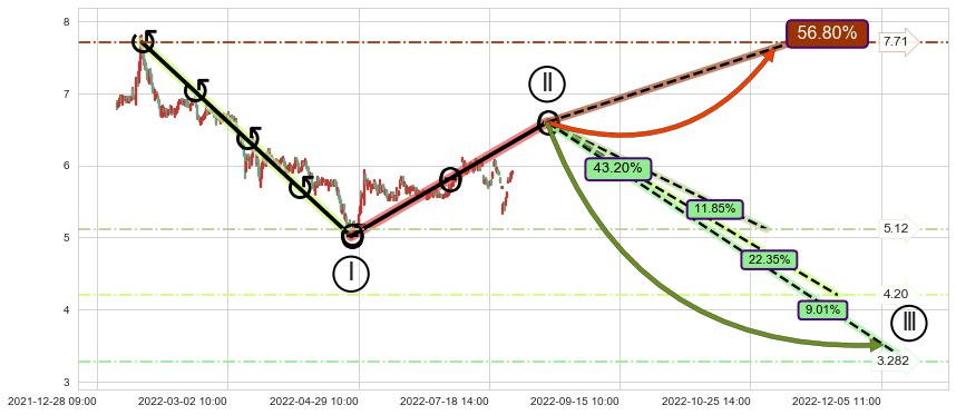 ♘ 支撑价格位5.81,可信任强度64.74%,距离最后交易2022-08-12 14:00形成的收盘价格5.91相差 -1.63%