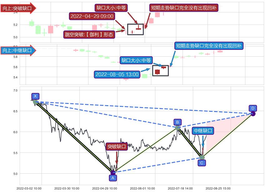 ➢ 2022-08-05 13:00形成:向上跳空【中继】缺口