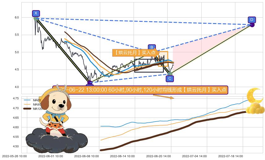 ➣ D点拟合预测价格5.79,距离最后交易收盘价格4.62相差 +25.27%