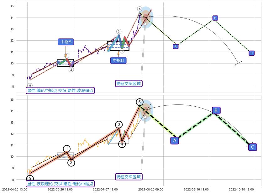 | 2 🌊:波浪理论临近C点止涨反转下跌 ➕ ☯️:缠论中枢点上升缠1卖回调拐点 ☞ 看空信号 ⇥ 【图形】交织【图形】⇥ 综合量化分数: 47 | > |