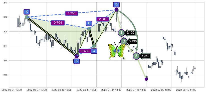 ➣ 已达成看跌【蝴蝶】形态全部的预期目标