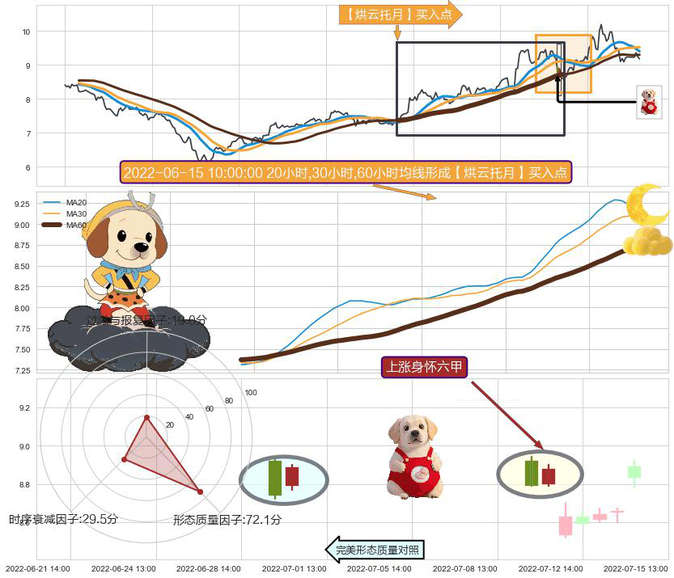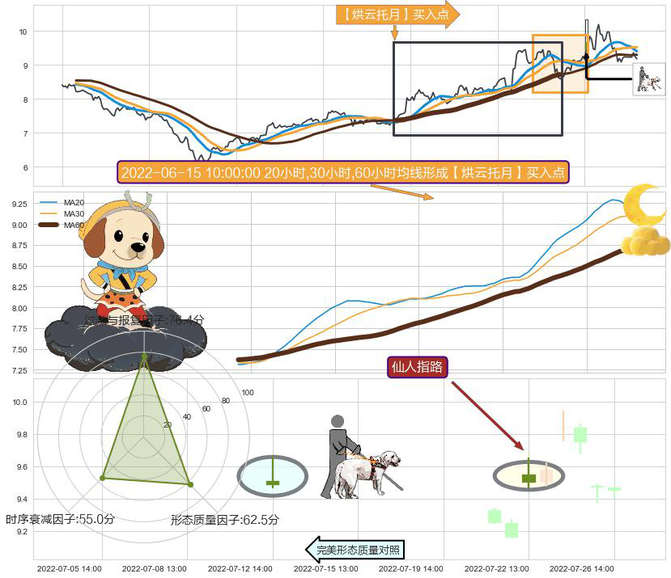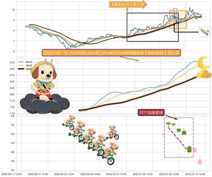 ➣ 2022-05-31 13:00:00小时-2022-07-12 14:00:00小时显现 20小时-30小时-60小时均线 【烘云托月】买入点 看多信号,后市看涨,买入