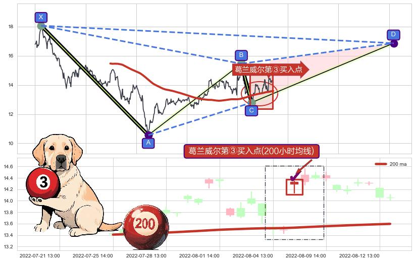 ➣ D点拟合预测价格16.87,距离最后交易收盘价格14.05相差 +20.06%