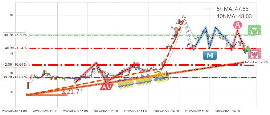 ♘ 支撑价格位42.09,可信任强度89.47%,距离最后交易2022-08-12 14:00形成的收盘价格47.10相差 -10.64%