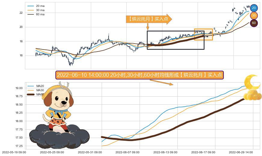 形态多维评估: ⚀ 2022-05-31 09:00:00小时-2022-06-28 14:00:00小时显现 20小时-30小时-60小时均线 【烘云托月】买入点 看多信号,后市看涨,买入