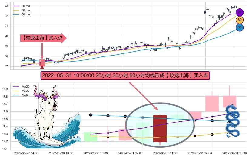 形态多维评估: ⚀ 2022-05-31 10:00:00小时显现 20小时-30小时-60小时均线 【蛟龙出海】买入点 看多信号,后市看涨,买入