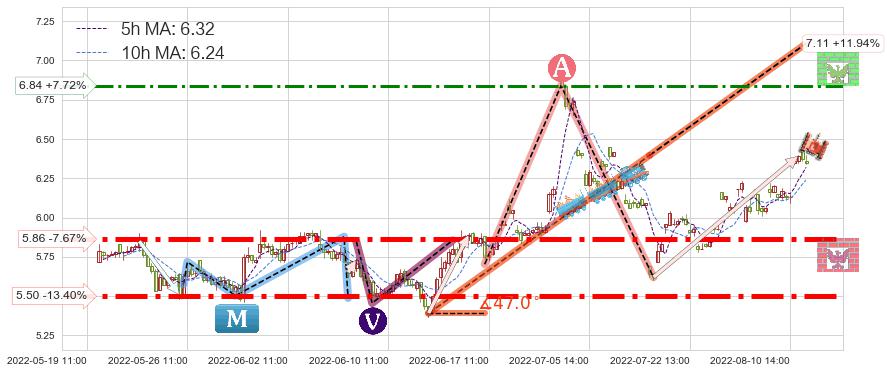 ♘ 阻力价格位6.84,可信任强度56.08%,距离最后交易2022-08-12 14:00形成的收盘价格6.35相差 +7.72%